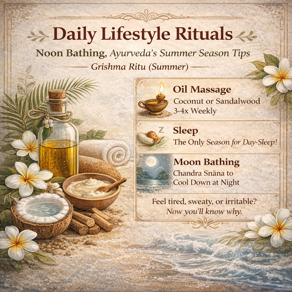 - Moon Bathing: Chandra Snāna to cool the body at night.